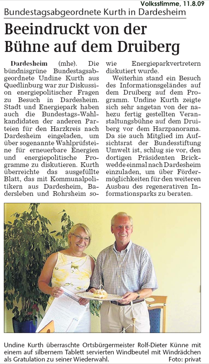 | 11.03.2005 | Berlin-Besuch von Bürgermeister Rolf-Dieter Künne zur Einwerbung von Fördergeldern seitens Umwelt- und Landwirtschaftsministerium und 4. öffentliche Biomasse-Infoveranstaltung in Dardesheim siehe Presseartikel |