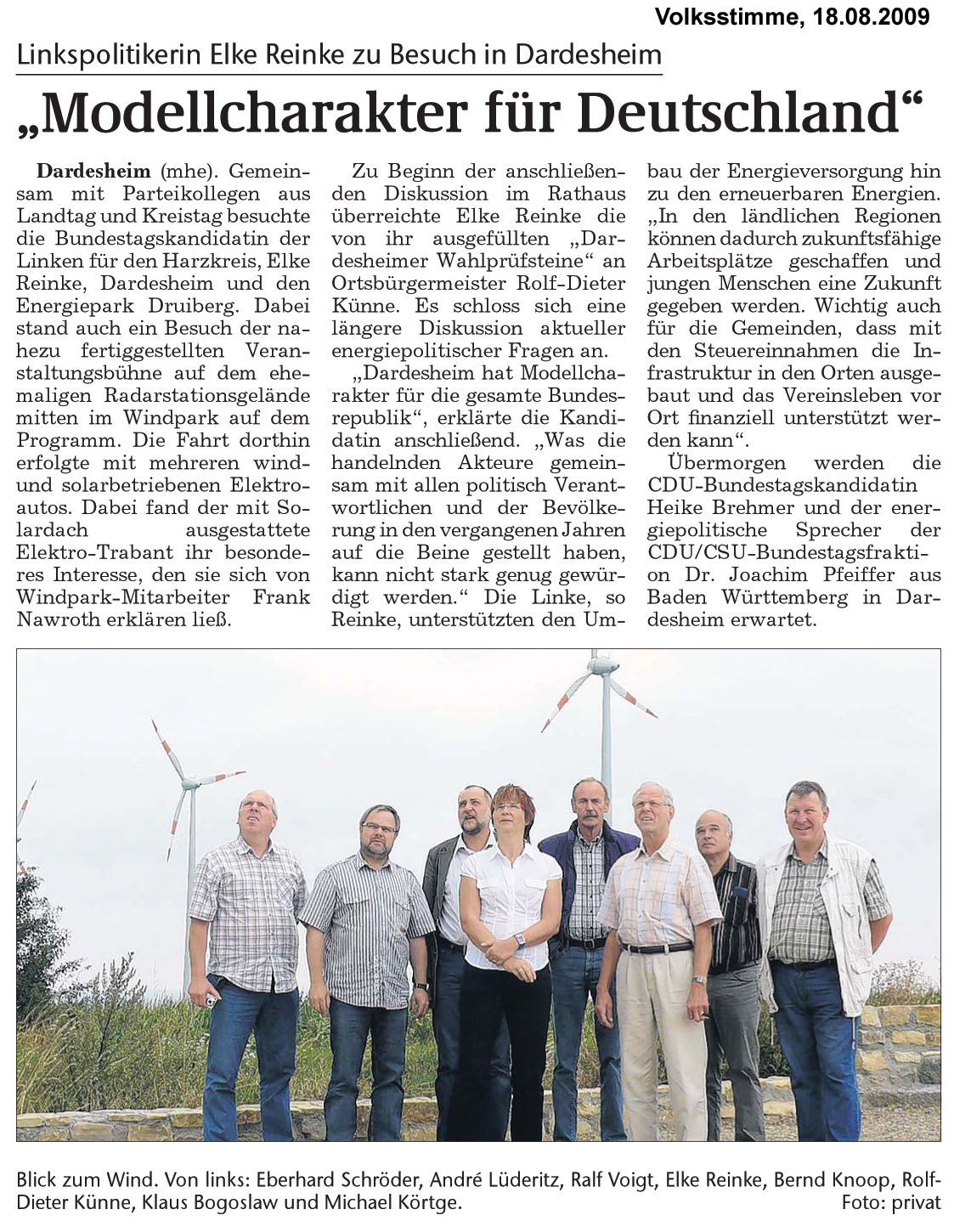 | 06.11.2010 | Informationsveranstaltung über die Regenerative Modellregion Harz in Dardesheim. siehe Presseartikel |